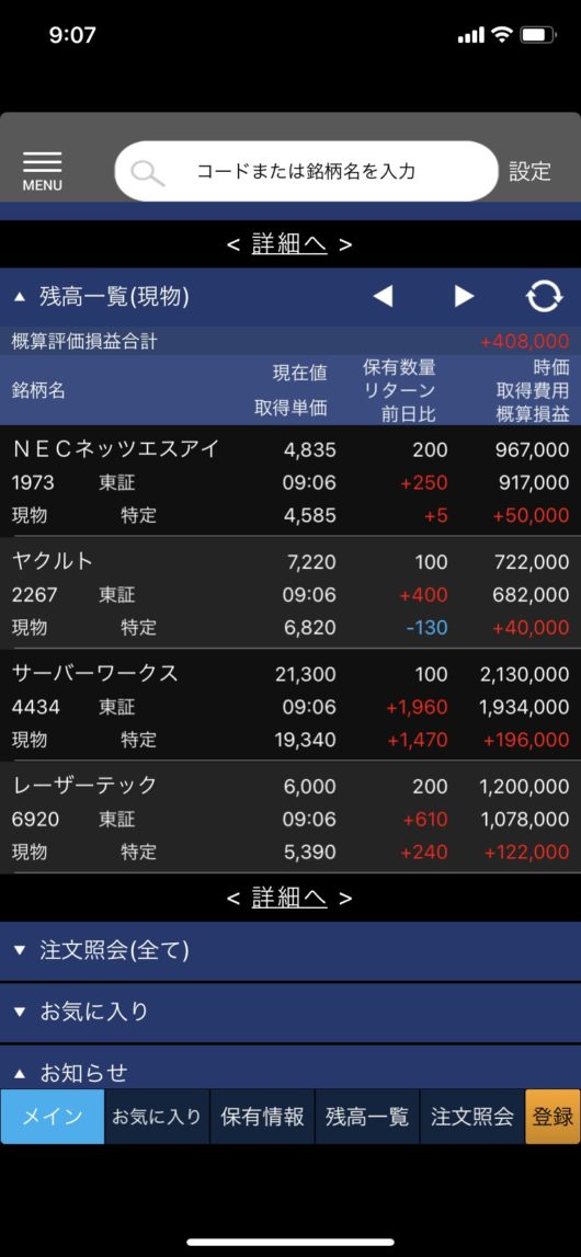 そう、個別株で利益を出せていれば、別に日経平均株価などの大きな流れが下落していても何も問題ではありません。以下の画像は僕の塾生のスマホ画面キャプチャです。