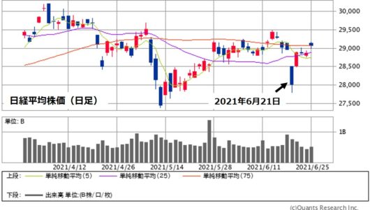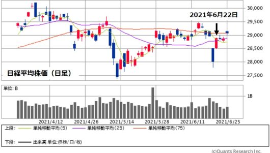 日経平均株価の日足チャート(2021年6月27日現在)